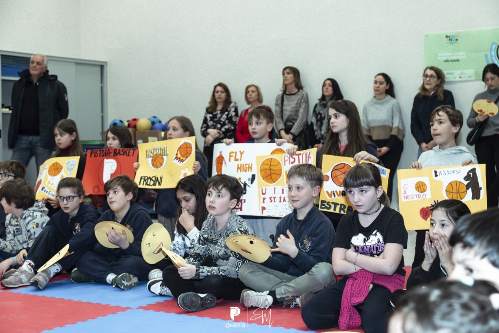 Alla cerimonia erano presenti il sindaco f.f. Anna Maria Celesti insieme agli assessori Alessandra Frosini, Benedetta Menichelli, Alessio Bartolomei e Gabriele Sgueglia. Per il Pistoia Basket hanno partecipato il presidente Joseph David, il vicepresidente Massimo Capecchi, il membro del consiglio di amministrazione e responsabile delle relazioni istituzionali Dario Baldassarri, il direttore generale Andrea Di Nino e i giocatori Filippo Gallo e Nicolò Dellosto. A rappresentare Conad Nord Ovest era presente Massimo Masi, direttore area Soci Toscana oltre ovviamente alla dirigente dell’Istituto Comprensivo “Marconi-Roncalli”, al quale la scuola “Frosini” fa campo, Claudia Ciocchetti.