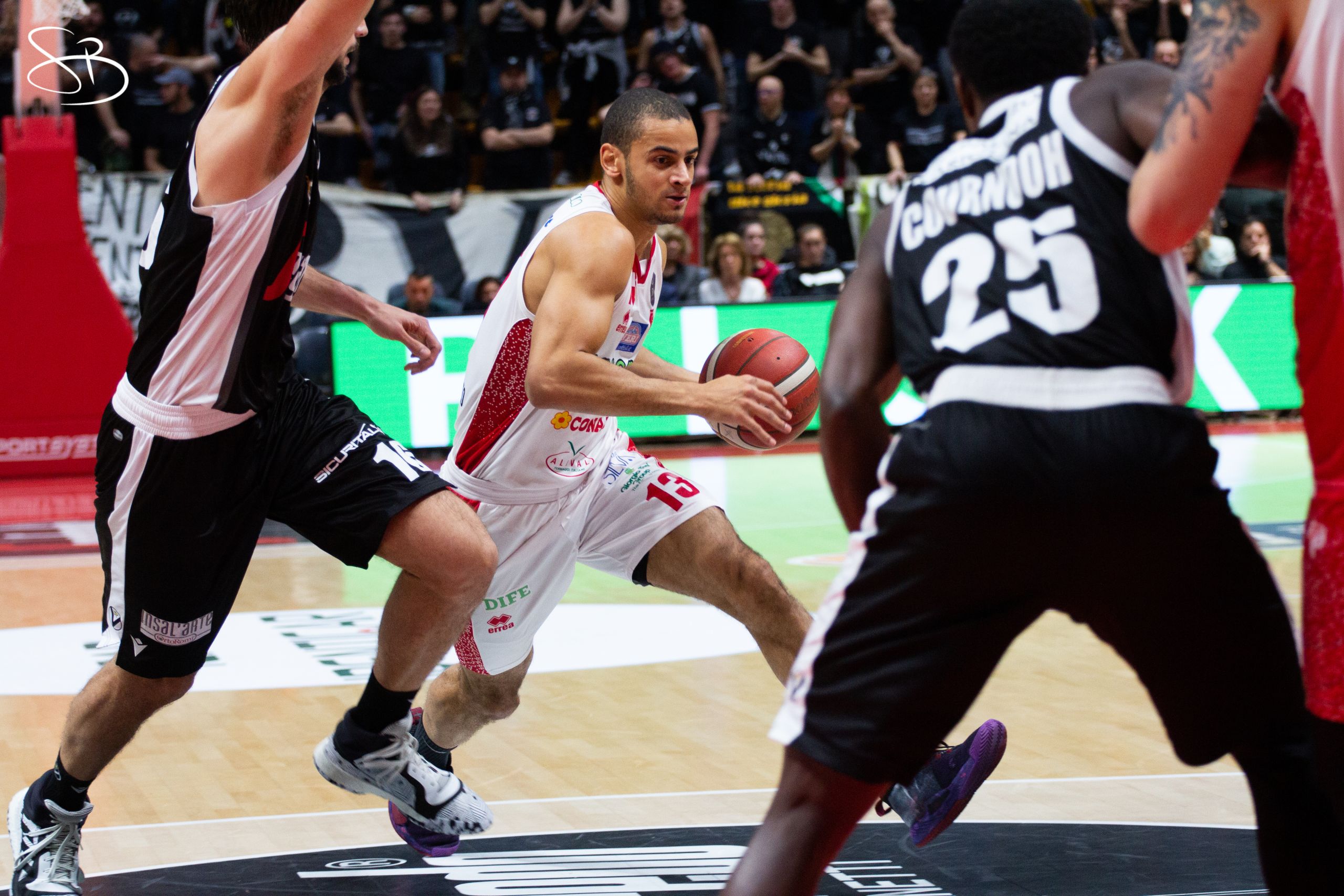Gaines spara dall’arco per respingere il tentativo di rimonta degli ospiti, lo imita Ricci che scrive 22 sul tabellino personale rispedendo Pistoia a -20. Salumu e Dowdell provano a non far ammainare la bandiera biancorossa anticipatamente, ma Gaines è in trance agonistica e fattura altri sei punti che sanno di titoli di coda. Nei minuti finali il punteggio assume tratti fin troppo severi, con Pistoia che molla il colpo concedendo tanti canestri facili: 90-60.